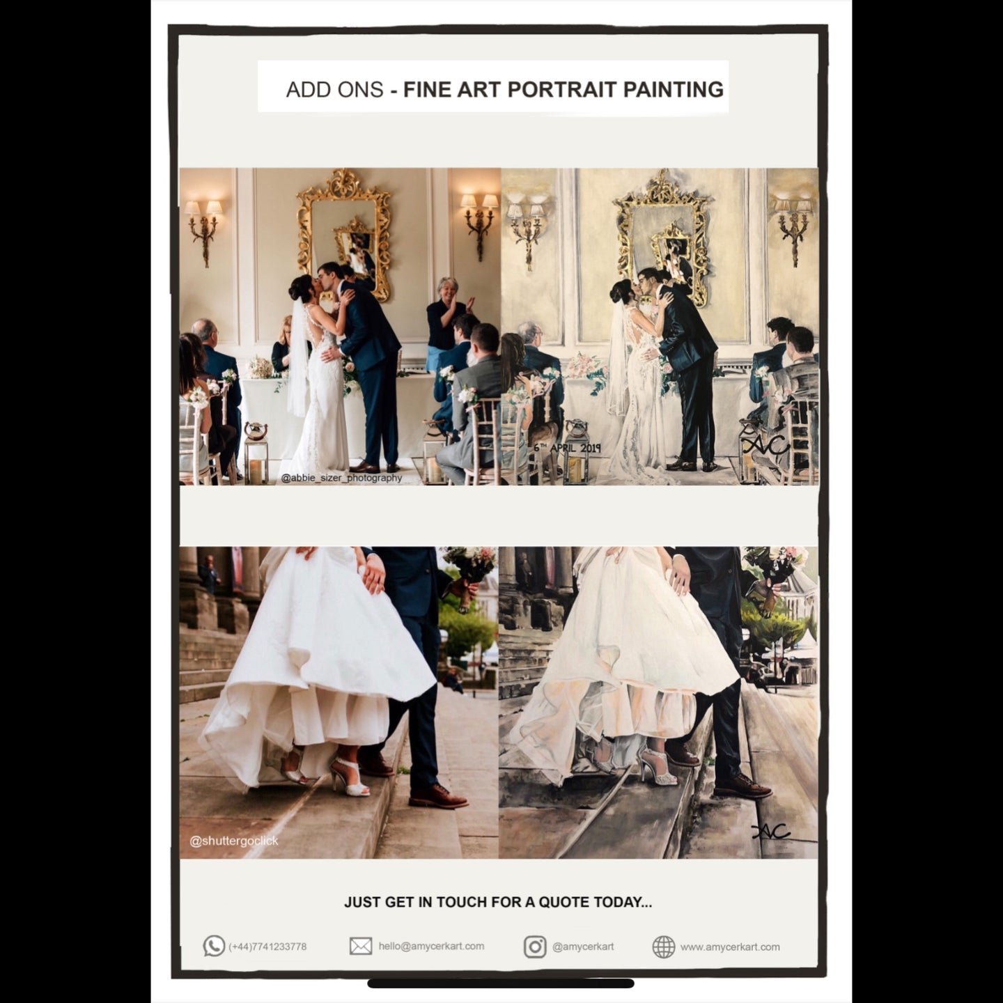 - Thank you Amy for our perfect wedding painting from one of our favourite photos. You have managed to capture every little detail from our special day. Look forward to framing it for our home to treasure this memory for the years to come!